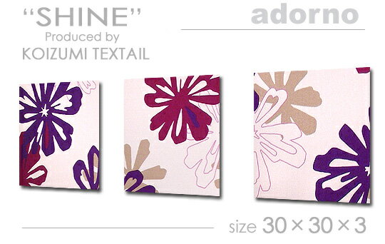 ファブリックパネル(木製ボード)ADORNO社/アドルノSHINE(PUR)/シャイン[SIZE:W30cm×H30cm×3set]各サイズ選べます価格: 7,200円レビュー評価: 0.0 レビュー数:0 他のサイズのご注文はこちらから W40×H40cm×3set 9,000円 W30×H30cm×3set 7,200円 W30×H30cm 2,500円 W40×H40cm 3,200円 W90×H30cm 6,000円 W90×H45cm 7,000円 W90×H60cm 8,000円 W120×H45cm 7,500円 W120×H60cm 8,500円 W140×H45cm 8,000円 W140×H60cm 10,000円 W140×H75cm 12,500円 W140×H90cm 15,000円 ■本来の柄を忠実に表現するため、木目が透けないように白生地を貼り、ホワイト加工を施してい |